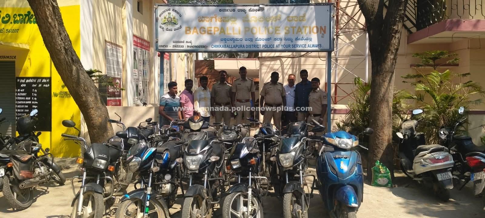 ಚಿಕ್ಕಬಳ್ಳಾಪುರ: ವಾಹನ ಕಳ್ಳತನದ ವಿರುದ್ಧದ ಪ್ರಮುಖ ಪ್ರಗತಿಯಲ್ಲಿ, ಬಾಗೇಪಲ್ಲಿ ಪೊಲೀಸ್ ಠಾಣೆ ಕುಖ್ಯಾತ ಅಂತರರಾಜ್ಯ ದ್ವಿಚಕ್ರ ವಾಹನ ಕಳ್ಳನನ್ನು ಬಂಧಿಸಿ ಸುಮಾರು ₹10 ಲಕ್ಷ ಮೌಲ್ಯದ ಕದ್ದ ವಾಹನಗಳನ್ನು ವಶಪಡಿಸಿಕೊಂಡಿದೆ. ವಿಶ್ವಾಸಾರ್ಹ ಮಾಹಿತಿ ಮತ್ತು ನಿರಂತರ ತನಿಖೆಯ ಮೇರೆಗೆ ಕಾರ್ಯನಿರ್ವಹಿಸಿದ ಪೊಲೀಸ್ ತಂಡವು ಆರೋಪಿಯನ್ನು ಬಂಧಿಸಿ, ಅವನ ಬಳಿಯಿಂದ 13 ಕದ್ದ ದ್ವಿಚಕ್ರ ವಾಹನಗಳನ್ನು ಯಶಸ್ವಿಯಾಗಿ ವಶಪಡಿಸಿಕೊಂಡಿದೆ. ವಶಪಡಿಸಿಕೊಂಡ ವಾಹನಗಳ ಒಟ್ಟಾರೆ ಮೌಲ್ಯ ಸುಮಾರು ₹10,00,000. ಬಾಗೇಪಲ್ಲಿ ಪೊಲೀಸರು ನಡೆಸಿದ ತ್ವರಿತ ಕ್ರಮ ಮತ್ತು ಪರಿಣಾಮಕಾರಿ ತನಿಖೆಯನ್ನು ವ್ಯಾಪಕವಾಗಿ ಪ್ರಶಂಸಿಸಲಾಗಿದೆ. ಪ್ರಕರಣವನ್ನು ಭೇದಿಸಿ ಕದ್ದ ವಾಹನಗಳನ್ನು ವಶಪಡಿಸಿಕೊಳ್ಳುವಲ್ಲಿ ಪೊಲೀಸ್ ತಂಡವು ಮಾಡಿದ ಸಮರ್ಪಿತ ಪ್ರಯತ್ನಗಳನ್ನು ಹಿರಿಯ ಪೊಲೀಸ್ ಅಧಿಕಾರಿಗಳು ಶ್ಲಾಘಿಸಿದ್ದಾರೆ.