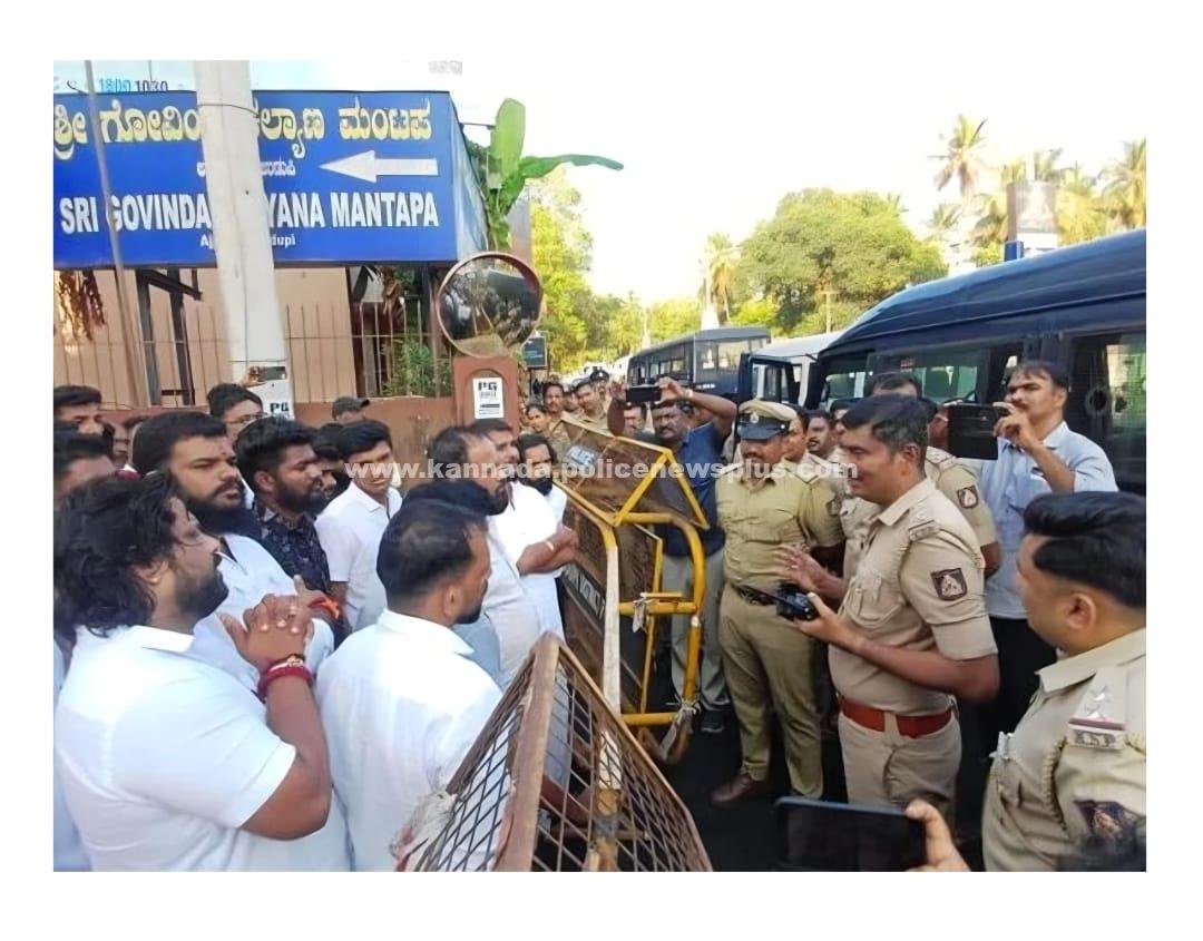 ದಿನಾಂಕ 20/03/2026 ರಿಂದ ದಿನಾಂಕ 22/03/2026ರ ತನಕ ಪ್ರತಿದಿನ 17:30 ಗಂಟೆಯಿಂದ 21:30 ಗಂಟೆಯ ತನಕ ಮಾನ್ಯ ಉಚ್ಚ ನ್ಯಾಯಾಲಯ, ಬೆಂಗಳೂರು ಇವರ ಆದೇಶ ಸಂಖ್ಯೆ WRIT PTN NO 9112/2026 ರಂತೆ ಉಡುಪಿ ನಗರ ಠಾಣಾ ವ್ಯಾಪ್ತಿಯ ಮಿಶಿನ್ ಕಂಪೌಂಡ ಬಳಿಯ ಕ್ರಿಶ್ಚಿಯನ್ ಪಿ.ಯು. ಕಾಲೇಜು ಮೈದಾನದಲ್ಲಿ ಫೆಲೋಶಿಪ್ ಆಫ್ ಉಡುಪಿ ಡಿಸ್ಟ್ರಿಕ್ಟ್ ಚರ್ಚಸ್ ರವರ ವತಿಯಿಂದ ಅಧ್ಯಕ್ಷರು ಫೆಲೋಶಿಪ್ ಆಫ್ ಉಡುಪಿ ಡಿಸ್ಟ್ರಿಕ್ಟ್ ಚರ್ಚಸ್ ರವರ ನೇತೃತ್ವದಲ್ಲಿ ಸಮಾಧಾನ ಮಹೋತ್ಸವ ಎಂಬ ಧಾರ್ಮಿಕ ಮತ ಪ್ರವಚನ ಕಾರ್ಯಕ್ರಮ ನಡೆಸುತ್ತಿದ್ದು, ಈ ಕಾರ್ಯಕ್ರಮದ ವಿಶೇಷ ಸಂದೇಶಕರಾಗಿ ಮೋಹನ್ ಸಿ ಲಾಜರಸ್ (ಪಾದ್ರಿಗಳು ತಮಿಳುನಾಡು) ರವರು ಆಗಮಿಸುವ ಬಗ್ಗೆ ತಿಳಿದ ಹಿಂದೂ ಜಾಗರಣ ವೇದಿಕೆ ಹಾಗೂ ಇತರ ಹಿಂದೂ ಪರ ಸಂಘಟನೆ ಪ್ರಮುಖರು ಮೋಹನ ಸಿ ಲಾಜರಸ್ ರವರ ವಿರುದ್ದ ತಮಿಳುನಾಡು ರಾಜ್ಯದಲ್ಲಿ ಹಿಂದೂ ದೇವರ ಅವಹೇಳನದ ಬಗ್ಗೆ ಪ್ರಕರಣಗಳು ದಾಖಲಾಗಿರುವುದರಿಂದ ಜಿಲ್ಲಾಡಳಿತ ಹಾಗೂ ಪೊಲೀಸ್ ಇಲಾಖೆ ಸದ್ರಿ ಕಾರ್ಯಕ್ರಮಕ್ಕೆ ಅನುಮತಿ ನೀಡದಂತೆ ಪತ್ರಿಕಾಗೋಷ್ಠಿ ಮುಖಾಂತರ ಒತ್ತಾಯಿಸಿದ್ದರು. ಪ್ರಾಂತ್ಯ ಕಾರ್ಯಕಾರಿಣಿ ಪ್ರಮುಖ ಹಿಂ.ಜಾ.ವೇ ರವರ ಮುಂದಾಳತ್ವದಲ್ಲಿ ಮೋಹನ ಸಿ ಲಾಜರಸ್ ರವರು ಉಡುಪಿ ಜಿಲ್ಲೆಗೆ ಆಗಮಿಸದಂತೆ ನಿರ್ಭಂದ ಹೇರುವಂತೆ ಮತ್ತು ಕಾರ್ಯಕ್ರಮಕ್ಕೆ ಅವಕಾಶ ನೀಡದಂತೆ ಒತ್ತಾಯಿಸಿ ದಿನಾಂಕ 20/03/2026 ರಂದು ಸಂಜೆ 5:00 ಗಂಟೆಗೆ ಗೋವಿಂದ ಕಲ್ಯಾಣ ಮಂಟಪದ ಬಳಿ ಸೇರಿ, ಮಾಧ್ಯಮದವರಿಗೆ ಬೈಟ್ ನೀಡಿ ಬಳಿಕ ಇತರರೊಂದಿಗೆ ಗೋವಿಂದ ಕಲ್ಯಾಣ ಮಂಟಪದ ಬಳಿ ಇರುವ ಎಮ್ ಟಿ ಆರ್ ಹೋಟೆಲ್ ಬಳಿಯ ಮುಖ್ಯ ರಸ್ತೆಗೆ ಬಂದು ನಾವು ಕ್ರಿಶ್ಚನ್ ಪಿಯು ಕಾಲೇಜ್ ನಲ್ಲಿ ನಡೆಯುವ ಕಾರ್ಯಕ್ರಮಕ್ಕೆ ಹೋಗುತ್ತೇವೆ ಎಂದು ಹೇಳಿ ಹೋಗಲು ಪ್ರಯತ್ನಿಸಿರುತ್ತಾರೆ.ಹಿಂದೂ ಜಾಗರಣ ವೇದಿಕೆಯ ಮುಖಂಡ ಶ್ರೀಕಾಂತ ಶೆಟ್ಟಿ ಹಾಗೂ 38 ಮಂದಿ ಕಾರ್ಯಕರ್ತರು ಅಕ್ರಮ ಕೂಟ ಸೇರಿಕೊಂಡು ಉಡುಪಿ ಗೋವಿಂದ ಕಲ್ಯಾಣಮಂಟಪದಿಂದ ಸಮಾಧಾನ ಮಹೋತ್ಸವ ಕಾರ್ಯಕ್ರಮ ನಡೆಯುವ ಸ್ಥಳಕ್ಕೆ ಘೋಷಣೆಗಳನ್ನು ಕೂಗುತ್ತ ಪ್ರತಿಭಟನೆ ಹೊರಟರು. ಈ ಸಂದರ್ಭದಲ್ಲಿ ತಡೆದ ಪೊಲೀಸರು, ಪ್ರತಿಭಟನಕರಾದ ಮಹೇಶ್ ಶೆಣೈ (43), ಶ್ರೀಕಾಂತ್ ಶೆಟ್ಟಿ, ಸಂತೋಷ (27), ಉಮೇಶ್ ನಾಯ್ಕ್ (51), ಉಮೇಶ್ (35), ರಮೇಶ್ ಶೆಟ್ಟಿ (43), ರಾಜೇಶ್ ಉಚ್ಚಿಲ (41), ದರ್ಶನ್ (23), ಉದಯ ಕುಮಾರ್ (44), ಪ್ರಶಾಂತ್ (40), ಗುರುರಾಜ್ (37), ಅಜೀತ್ ಗೋಳಿಕಟ್ಟೆ (39), ರಾಧಕೃಷ್ಣ (55), ರೀತೇಶ್ ಪೂಜಾರಿ (25), ಜಗದೀಶ ಪೂಜಾರಿ (31), ಮಹೇಶ್ ಪೂಜಾರಿ (33), ಸುನೀಲ್ ಪೂಜಾರಿ (26), ಚಿರಾಗ್ ಎಚ್.ಎಸ್. (22), ಸುದೀಪ್ ಕಡಿಯಾಳಿ (23), ನಿಖಿಲ್ (28), ಸುಜೀತ್ (28), ಸಾಜನ್ ಎಂ. ಶೆಟ್ಟಿ (34), ರಾಜೇಶ್ ಪೈಯಾರ್ (43), ಲಕ್ಷ್ಮಣ್ ಕರ್ಕೇರ (49), ಶರತ್ ಕುಮಾರ್ ಬೈಲಕೆರೆ (42), ಶೈಲೇಂದ್ರ ಶೆಟ್ಟಿ (50), ವಿಕೇಶ್ ಎಸ್. (29), ನಿತೇಶ್ (32), ಸರೋಜಾ ಶೆಣೈ (52), ತಾರಾ ಎಸ್., ತಾರಾ ಆಚಾರ್ಯ (55), ಸಿಂಚನ್ (21), ಧನುಷ್ ಶೆಟ್ಟಿ (21), ವಿಶೇಕ್ ಶೆಟ್ಟಿ (20), ಸಾತ್ವೀಕ್ (20), ಮನೀಷ್ (21), ಅಶ್ವತ್ ಆಚಾರ್ಯ (37), ದಿನೇಶ್ ಸಾವಂತ (47) ಅವರನ್ನು ಬಂಧಿಸಿ ಪ್ರಕರಣ ದಾಖಲಿಸಿಕೊಂಡಿದ್ದಾರೆ.ಈ ವೇಳೆ ಪೊಲೀಸರು ಅವರನ್ನು ತಡೆದು 38 ಜನ ಪ್ರತಿಭಟನಾಕಾರರನ್ನು ದಸ್ತಗಿರಿ ಮಾಡಿ ನಂತರ ಬಿಡುಗಡೆಗೊಳಿಸಿರುತ್ತಾರೆ. ಈ ಕುರಿತು ಉಡುಪಿ ನಗರ ಠಾಣೆಯಲ್ಲಿ ಎಲ್ಲಾ 38 ಆರೋಪಿತರ ಮೇಲೆ ಉಡುಪಿ ನಗರ ಪೊಲೀಸ್ ಠಾಣಾ ಅಪರಾಧ ಕ್ರಮಾಂಕ : 44/2026 ಕಲಂ 189(2) BNS, ಕಲಂ. 112 KP act ನಂತೆ ಕ್ರಿಮಿನಲ್ ಪ್ರಕರಣ ದಾಖಲಿಸಲಾಗಿರುತ್ತದೆ.