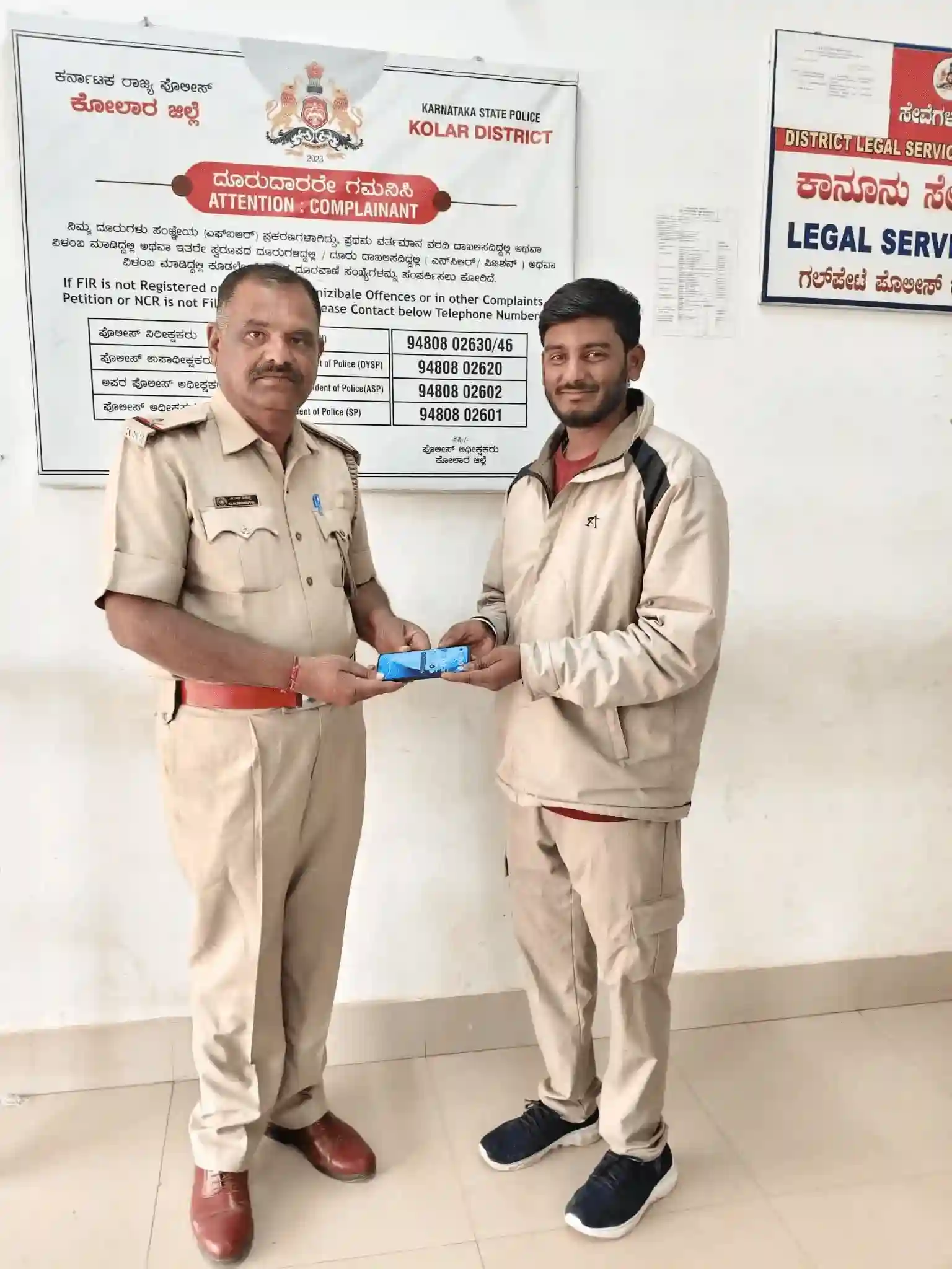 ಇಂದು ಕೋಲಾರ ಜಿಲ್ಲೆಯ ಗಲ್ ಪೇಟೆ ಪೊಲೀಸ್ ಠಾಣೆಯಲ್ಲಿ ಸಾರ್ವಜನಿಕರು ತಮ್ಮ ಮೊಬೈಲ್ ಫೋನ್ ಗಳು ಕಳುವಾಗಿರುವ ಬಗ್ಗೆ ದೂರು ನೀಡಿದ್ದು ಅದರಂತೆ ಸಿ. ಇ. ಐ.ಅರ್ ಪೋರ್ಟೆಲ್ ಮೂಲಕ ಕಳುವಾಗಿದ್ದ ಮೊಬೈಲ್ಗಳನ್ನು ಪತ್ತೆ ಮಾಡಿ ಮಾಲೀಕರಿಗೆ ಹಸ್ತಾಂತರಿಸಲಾಯಿತು.