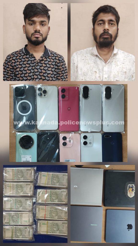 2 ಜನ ಆರೋಪಿಗಳ ಬಂಧನ ನಗದು, ಮೊಬೈಲ್ ಮತ್ತು ಲ್ಯಾಪ್ ಟಾಪ್ ಸೇರಿ ಒಟ್ಟು ರೂ, 6,15,000/- ನ ಸೊತ್ತುಗಳನ್ನು ಸ್ವಾಧೀನಪಡಿಸಲಾಗಿದೆ.