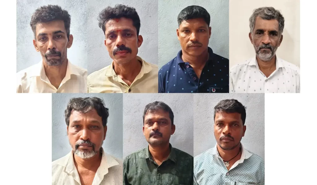 1) ಶ್ರೀನಿವಾಸ(63), ಕೋಡಿ ರಸ್ತೆ, ಹಂಗಳೂರು ಗ್ರಾಮ, ಕುಂದಾಪುರ 2) ಸೂರ್ಯ(51),ಬಿದ್ಕಲ್ಕಟ್ಟೆ, ಹಾರ್ದಳ್ಳಿ-ಮಂಡಳ್ಳಿ ಗ್ರಾಮ, ಬ್ರಹ್ಮಾವರ, 3) ಚಂದ್ರಹಾಸ (40), ಹನುಮಂತ ನಗರ, ಅಂಬಾಗಿಲು, ಪುತ್ತೂರು, ಉಡುಪಿ, 4) ಕೃಷ್ಣ(46), ಬೀಜಾಡಿ ಗ್ರಾಮ, ಕೊಟೇಶ್ವರ, ಕುಂದಾಪುರ, 5) ಫುರಂದರ(44), ಕೊರವಾಡಿ, ಕುಂಬಾಶಿ ಗ್ರಾಮ, ಕುಂದಾಪುರ, 6) ರಜಾಕ್(52), ಕೊಳಂಬೆ, ಬ್ರಹ್ಮಾವರ ಮತ್ತು 7) ಸದಾಶಿವ ದೇವಾಡಿಗ(48), ನೀಲಾವರ ಗ್ರಾಮ, ಬ್ರಹ್ಮಾವರ ಇವರುಗಳನ್ನು ವಶಕ್ಕೆ ಪಡೆದು, ಆಟಕ್ಕೆ ಬಳಸಿದ ನಗದು ಹಣ ರೂ. 1,130/-, ಇಸ್ಪೀಟ್ ಎಲೆಗಳು-52, ಮೊಬೈಲ್ ಹ್ಯಾಂಡ್ ಸೆಟ್ ಗಳು- 7, ಪ್ಲಾಸ್ಟಿಕ್ ಚೇರ್ ಗಳು – 40 ರೌಂಡ್ ಟೇಬಲ್ ಗಳು -3, ಪ್ಲಾಸ್ಟಿಕ್ ಸ್ಟೂಲ್ ಗಳು – 5, ಟೇಬಲ್ ಗಳು-1, ಸಿಸಿ ಕ್ಯಾಮೇರಾ ಡಿವಿಆರ್ -1 ಮತ್ತು ಮೊನಿಟರ್ -1 ನ್ನು ಮತ್ತು ಕ್ಲಬ್ ನ ಲೆಜ್ಜರ್ ಗಳು -3 ನ್ನು ಸ್ವಾಧೀನಪಡಿಸಿ ಕೊಂಡಿದ್ದಾಗಿದೆ. ಈ ಬಗ್ಗೆ ಕೋಟ ಪೊಲೀಸ್ ಠಾಣಾ ಅಪರಾಧ ಕ್ರಮಾಂಕ : 193/2025 ಕಲಂ: 79, 80 ಕೆಪಿ ಆಕ್ಟ್ ರಂತೆ ಪ್ರಕರಣ ದಾಖಲಿಸಿಕೊಳ್ಳಲಾಗಿದೆ.