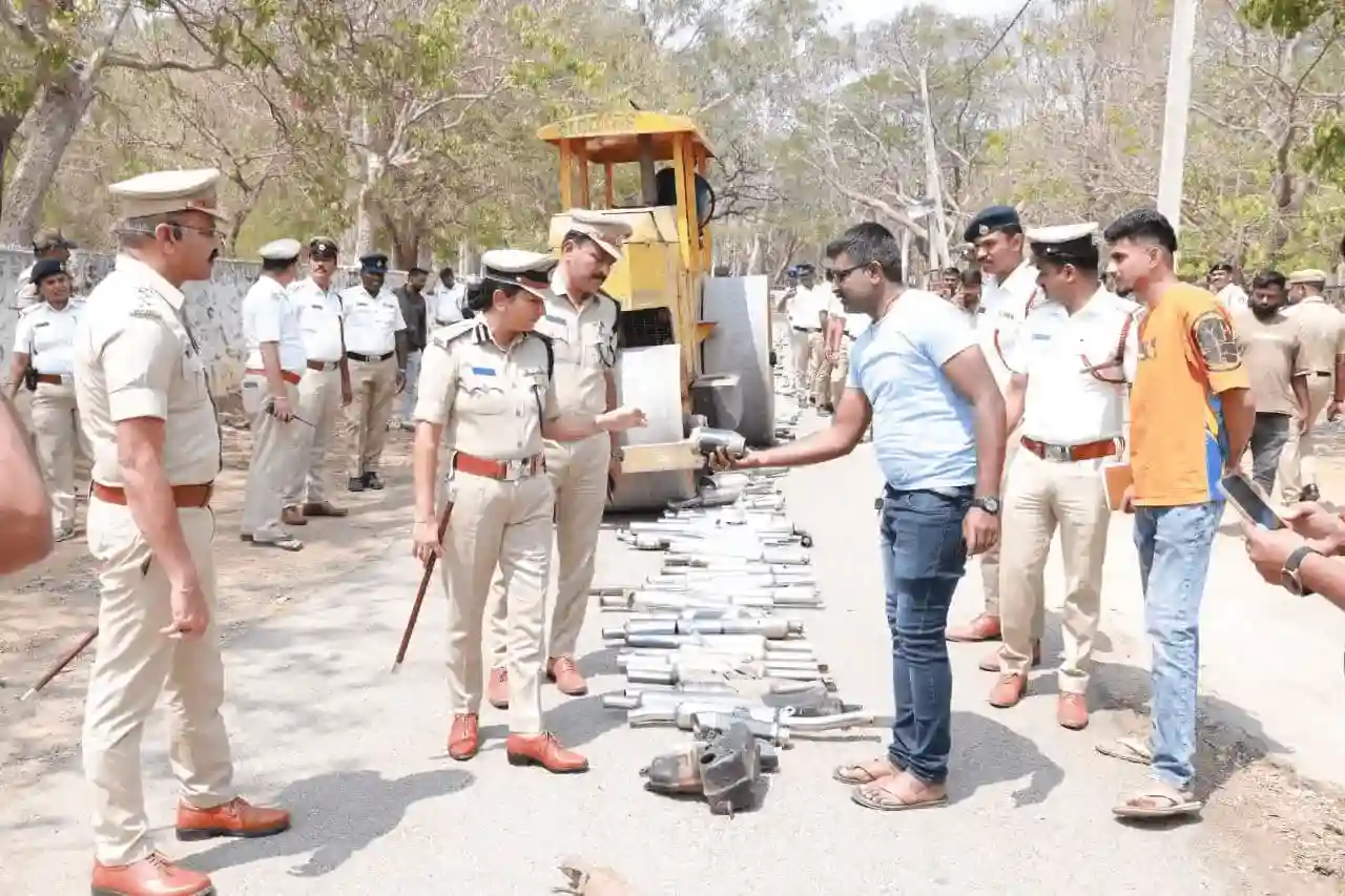 ಮೈಸೂರು: ಶಬ್ದ ಮಾಲಿನ್ಯ ಮತ್ತು ಸಂಚಾರ ನಿಯಮಗಳ ಉಲ್ಲಂಘನೆಯ ವಿರುದ್ಧ ನಿರ್ಣಾಯಕ ಕ್ರಮವಾಗಿ, ಸಿದ್ಧಾರ್ಥ ಸಂಚಾರ ಪೊಲೀಸ್ ಠಾಣೆಯ ಮುಂದೆ ಶಬ್ದ ಮತ್ತು ದೋಷಯುಕ್ತ ಮೋಟಾರ್ ಸೈಕಲ್ ಸೈಲೆನ್ಸರ್ಗಳನ್ನು ಕೆಡವಲಾಯಿತು. ನಗರ ಪೊಲೀಸ್ ಆಯುಕ್ತ ಸೀಮಾ ಲಾಟ್ಕರ್ ನೇತೃತ್ವದಲ್ಲಿ, ಡಿಸಿಪಿ ಸುಂದರ್ ರಾಜ್ ಕೆ ಎಸ್ ಮತ್ತು ಇತರ ಹಿರಿಯ ಪೊಲೀಸ್ ಅಧಿಕಾರಿಗಳ ಸಮ್ಮುಖದಲ್ಲಿ ಜಾರಿ ಕಾರ್ಯಾಚರಣೆ ನಡೆಯಿತು. ಸಾರ್ವಜನಿಕರಿಗೆ ತೊಂದರೆ ಉಂಟುಮಾಡುವ ಮತ್ತು ಮೋಟಾರು ವಾಹನ ನಿಯಮಗಳನ್ನು ಉಲ್ಲಂಘಿಸುವ ಮಾರ್ಪಡಿಸಿದ ಮತ್ತು ಹೆಚ್ಚಿನ ಡೆಸಿಬಲ್ ಸೈಲೆನ್ಸರ್ಗಳ ಬಳಕೆಯನ್ನು ತಡೆಯುವ ನಿರಂತರ ಪ್ರಯತ್ನಗಳ ಭಾಗವಾಗಿ ಈ ಕ್ರಮ ಕೈಗೊಳ್ಳಲಾಯಿತು. ವಶಪಡಿಸಿಕೊಂಡ ಸೈಲೆನ್ಸರ್ಗಳನ್ನು ಸಾರ್ವಜನಿಕವಾಗಿ ನಾಶಪಡಿಸಲಾಯಿತು, ಅಂತಹ ಉಲ್ಲಂಘನೆಗಳ ವಿರುದ್ಧ ಬಲವಾದ ಸಂದೇಶವನ್ನು ಕಳುಹಿಸಲಾಯಿತು. ಸಾರ್ವಜನಿಕ ಶಾಂತಿ, ರಸ್ತೆ ಸುರಕ್ಷತೆ ಮತ್ತು ಸಂಚಾರ ಕಾನೂನುಗಳನ್ನು ಕಟ್ಟುನಿಟ್ಟಾಗಿ ಜಾರಿಗೊಳಿಸುವಲ್ಲಿ ಮೈಸೂರು ನಗರ ಪೊಲೀಸರ ಬದ್ಧತೆಯನ್ನು ಈ ಉಪಕ್ರಮವು ಒತ್ತಿಹೇಳುತ್ತದೆ.