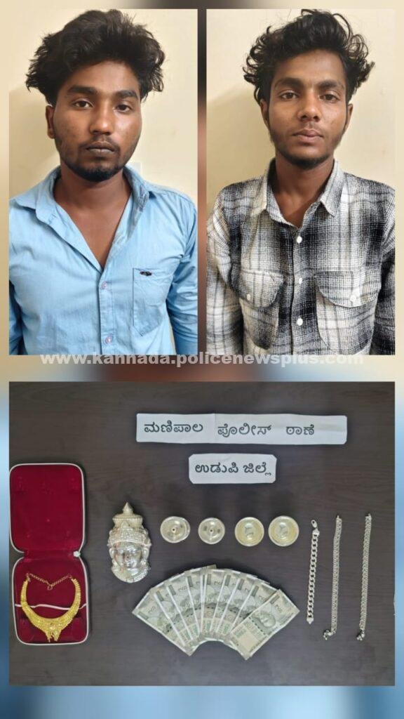 ಉಡುಪಿ: ಮಣಿಪಾಲ ಪೊಲೀಸ್ ಠಾಣೆ ಹಗಲು ಮನೆ ಕಳ್ಳತನ ಪ್ರಕರಣವನ್ನು 12 ಗಂಟೆಗಳಲ್ಲಿ ಯಶಸ್ವಿಯಾಗಿ ಭೇದಿಸಿದೆ, ಇಬ್ಬರು ಆರೋಪಿಗಳನ್ನು ಬಂಧಿಸಿ, ಕಾನೂನು ವಿರುದ್ಧ ಹೋರಾಡಿದ ಇಬ್ಬರು ಬಾಲಾಪರಾಧಿಗಳನ್ನು ವಶಕ್ಕೆ ಪಡೆದಿದೆ. ಆರೋಪಿಗಳಿಂದ ₹4,47,000 ಮೌಲ್ಯದ ಚಿನ್ನ ಮತ್ತು ಬೆಳ್ಳಿ ಆಭರಣಗಳು ಮತ್ತು ನಗದು ಪೊಲೀಸರು ವಶಪಡಿಸಿಕೊಂಡಿದ್ದಾರೆ. ಬಡಗುಬೆಟ್ಟು ಗ್ರಾಮದ ಶಾಂತಿನಗರ ನಿವಾಸಿ ಸಂಗೀತಾ ಮಡಿವಾಳ ಅವರು ನೀಡಿದ ದೂರಿನ ಆಧಾರದ ಮೇಲೆ ಪ್ರಕರಣ ದಾಖಲಿಸಲಾಗಿದೆ, ಅವರು ಮಾರ್ಚ್ 12, 2026 ರಂದು ಬೆಳಿಗ್ಗೆ 8 ಗಂಟೆ ಸುಮಾರಿಗೆ ತಮ್ಮ ಮನೆಗೆ ಬೀಗ ಹಾಕಿ ತನ್ನ ತಾಯಿಯ ಮನೆಗೆ ಹೋಗಿದ್ದರು. ಮಧ್ಯಾಹ್ನ 2 ಗಂಟೆ ಸುಮಾರಿಗೆ ಅವರು ಹಿಂತಿರುಗಿದಾಗ, ಅಪರಿಚಿತ ವ್ಯಕ್ತಿಗಳು ಮನೆಗೆ ನುಗ್ಗಿ, ಬೀರು ತೆರೆದು, ಚಿನ್ನ, ಬೆಳ್ಳಿ ಆಭರಣಗಳು ಮತ್ತು ನಗದು ಕದ್ದಿದ್ದಾರೆ ಎಂದು ಅವರು ಕಂಡುಕೊಂಡರು. ಉಡುಪಿ ಉಪವಿಭಾಗದ ಉಪ ಪೊಲೀಸ್ ವರಿಷ್ಠಾಧಿಕಾರಿ ಕೆ. ಬೆಳ್ಳಿಯಪ್ಪ ಅವರ ನಿರ್ದೇಶನದ ಮೇರೆಗೆ, ಮಣಿಪಾಲ ಪೊಲೀಸ್ ಠಾಣೆಯ ಪಿಎಸ್ಐ ತಿಮ್ಮೇಶ್ ಬಿ.ಎನ್. ನೇತೃತ್ವದ ವಿಶೇಷ ತಂಡವು ಅಪರಾಧ ಸಿಬ್ಬಂದಿಯೊಂದಿಗೆ ತೀವ್ರ ತನಿಖೆ ನಡೆಸಿ ಪ್ರದೇಶದಲ್ಲಿ ವಿಶೇಷ ಸುತ್ತು ಹಾಕಿತು. ಮಾರ್ಚ್ 13, 2026 ರಂದು ಶಿವಳ್ಳಿ ಗ್ರಾಮದ ಶಿಂಬ್ರಾ ಸೇತುವೆ ಬಳಿ ಗಸ್ತು ತಿರುಗುತ್ತಿದ್ದಾಗ, ಪೊಲೀಸರು ಇಬ್ಬರು ಅನುಮಾನಾಸ್ಪದ ವ್ಯಕ್ತಿಗಳು ಮತ್ತು ಇಬ್ಬರು ಬಾಲಾಪರಾಧಿಗಳನ್ನು ವಿಚಾರಣೆಗೆ ಒಳಪಡಿಸಿದರು. ವಿಚಾರಣೆಯ ಸಮಯದಲ್ಲಿ, ಅವರು ಶಾಂತಿನಗರದಲ್ಲಿ ಬೀಗ ಹಾಕಿದ ಮನೆಯಲ್ಲಿ ಕಳ್ಳತನ ಮಾಡಿರುವುದಾಗಿ ಒಪ್ಪಿಕೊಂಡರು. ಬಂಧಿತ ಆರೋಪಿಗಳನ್ನು ಸಂತೋಷ @ ಸಂತೋಷ ಪೋಲೇಶಿ (20) ಮತ್ತು ಚಿರಂತನ್ (21) ಎಂದು ಗುರುತಿಸಲಾಗಿದೆ. ಪೊಲೀಸರು ಅವರ ಬಳಿಯಿಂದ ಕದ್ದ ಚಿನ್ನ ಮತ್ತು ಬೆಳ್ಳಿ ಆಭರಣಗಳು, ನಗದು ಮತ್ತು ಅಪರಾಧಕ್ಕೆ ಬಳಸಿದ ಉಪಕರಣಗಳನ್ನು ವಶಪಡಿಸಿಕೊಂಡರು. ಪೊಲೀಸ್ ಇನ್ಸ್ಪೆಕ್ಟರ್ ಮಹೇಶ್ ಪ್ರಸಾದ್ ಅವರ ಮೇಲ್ವಿಚಾರಣೆಯಲ್ಲಿ ಕಾರ್ಯಾಚರಣೆಯನ್ನು ನಡೆಸಲಾಯಿತು, ಪಿಎಸ್ಐ ತಿಮ್ಮೇಶ್ ಬಿ.ಎನ್., ಅಪರಾಧ ಸಿಬ್ಬಂದಿ ಎಚ್ಸಿ ವಿಶ್ವಜಿತ್ ಬೆಲ್ಲೆ, ಮೊಹಮ್ಮದ್ ಅಜ್ಮಲ್ ಹೈಕಾಡಿ, ಚೇತನ್, ಪಿಸಿ ರವಿರಾಜ್ ಮತ್ತು ಇತರ ಸಹಾಯಕ ಸಿಬ್ಬಂದಿ ಭಾಗವಹಿಸಿದ್ದರು. ತ್ವರಿತ ತನಿಖೆ ಮತ್ತು ಸಂಘಟಿತ ಕ್ರಮವು ಪ್ರಕರಣವನ್ನು ತ್ವರಿತವಾಗಿ ಪತ್ತೆಹಚ್ಚಲು ಮತ್ತು ಕದ್ದ ಆಸ್ತಿಯನ್ನು ವಶಪಡಿಸಿಕೊಳ್ಳಲು ಕಾರಣವಾಯಿತು ಎಂದು ಪೊಲೀಸ್ ಅಧಿಕಾರಿಗಳು ತಿಳಿಸಿದ್ದಾರೆ, ಇದು ಸಾರ್ವಜನಿಕ ಸುರಕ್ಷತೆ ಮತ್ತು ಅಪರಾಧ ತಡೆಗಟ್ಟುವಿಕೆಗೆ ಇಲಾಖೆಯ ಬದ್ಧತೆಯನ್ನು ಪ್ರದರ್ಶಿಸುತ್ತದೆ.